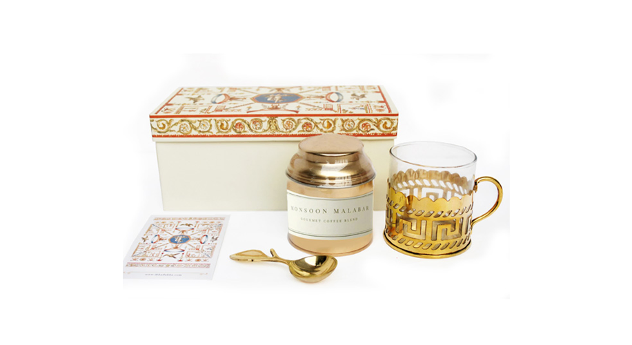 Is a cup of coffee his alarm clock? Equipped with a stunning handcrafted brass cup, a brass measuring spoon, and gourmet coffee, this gift box will remind him of you with every sip!