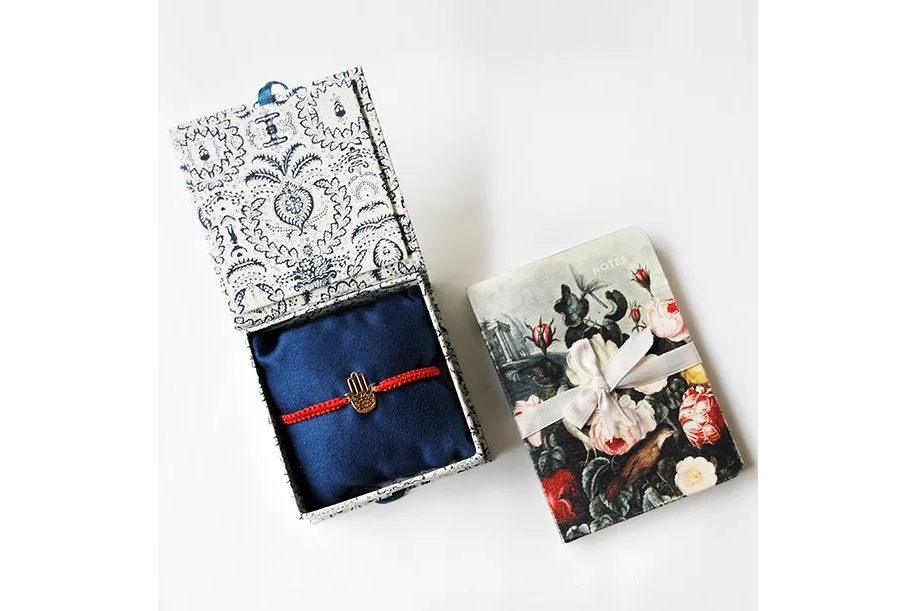 A lovely set of handmade, everyday-wear jewelry and pocket size journals in beautiful art prints with excellent quality paper for your girl to pen her thoughts.