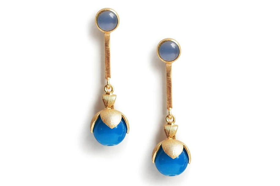 If you’re in the mood to take the less beaten path and give the lady in your life a unique piece of jewelry, then you’ve hit gold! Crafted out of stunning blue chalcedony beads these earrings make a resounding fashion statement.