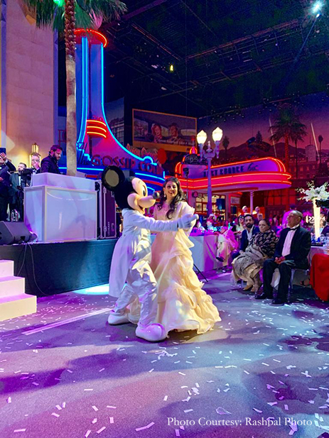 “Maharaja Goofy was one of the first characters with whom the guests interacted and this set the tone for fun and eventful celebrations over the next few days. The elements of Bollywood to Hollywood transitioned from one event to the other through different entertainment acts, music forms, artists, decor and culinary offerings. The highlight was the groom’s baraat which saw a mix of Disney Parade artists with traditional drums and trained dancers from around the world dancing to Disney choreographed sessions and Punjabi Bhangra music and entertainment led by artist Juggy D.”