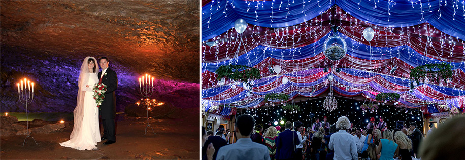 The ancient caves of Wookey Hole in Somerset contain some of the most beautiful rock formations in Britain. Stunning and mysterious, surrounded by clear pools that sparkle by candlelight, you can exchange your vows deep in the heart of the good earth in any one of the three spectacular wonders that are the cave chambers.