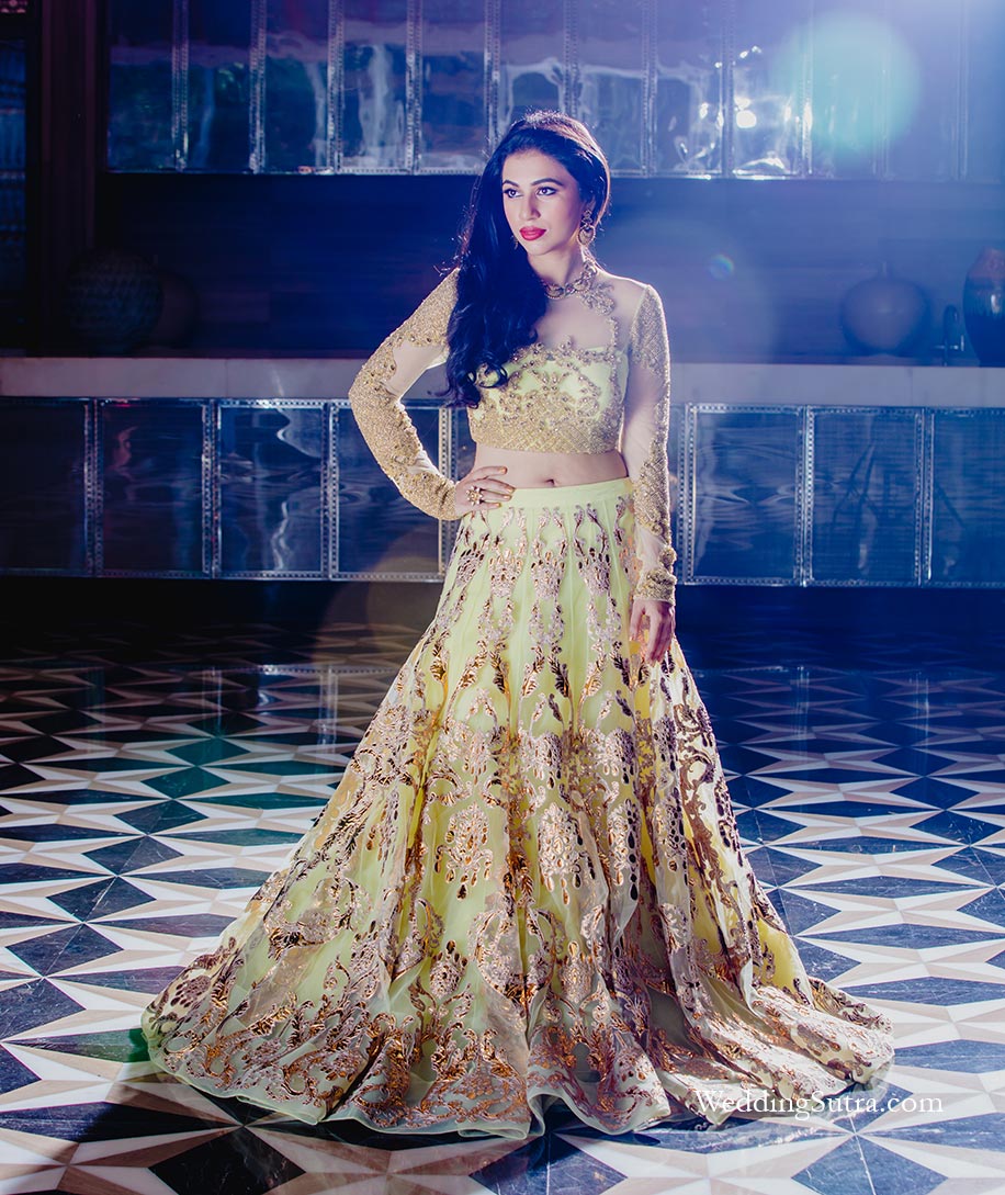 Mekhala Sawant’s choice of a stunning lemon yellow Lehenga from Falguni and Shane Peacock, fine Jewellery from Azva and luscious red lips by Tejas Shah for Lakme Absolute definitely left us awestruck!