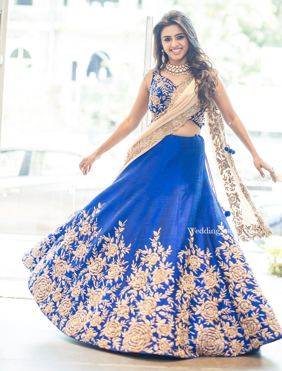 Seema Jassani’s transformation gave us serious bridal goals! Striking Make-up and Hair from Recinda Martis for Lakmé Absolute, a deep blue Lehenga from Kalki Fashion and Uncut Diamond Jewellery from Mahesh Notandass just added to Seema’s cheeky radiance as she prepared for her big day!