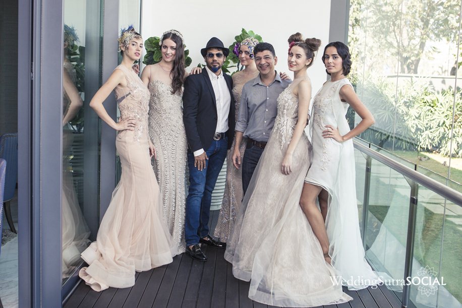 Shane Peacock and Percy Chowdhry of Rustomjee with models in Falguni & Shane Peacock summer bridal collection.