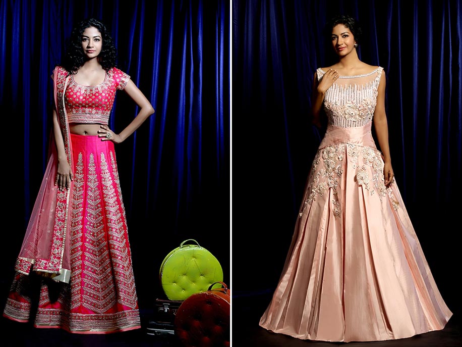 This Valentine’s month, Jiya by Veer Design Studio has introduced a range of pastel lehengas and cocktail gowns for elegant wedding functions. Most of their gowns and lehengas are cinched at the waist for a figure-flattering look and include beautiful embroidery and flower appliques.