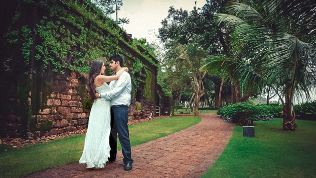 About the couple’s pre-wedding photo shoot, Ashwin & Jhalak say: “We wanted an elaborate pre-wedding shoot for the couple, as they both are very enthusiastic when it comes to trying new concepts. Sanjay himself is a photographer, so he wanted his shoot to be very novel and detailed, and we starting working on the concept a month ago. When we thought about the location for the shoot, we couldn’t think of a better location than the hotel itself. Grand Hyatt, Goa is huge and incorporates various scenic indoor and outdoor areas, which made it ideal for us to get some amazing shots. Usually, the weather in Goa in September is unfavorable for outdoor photoshoots. But when we started Deepti and Sanjay’s shoot on the scheduled day, we got lucky as it didn’t rain at all and everything went off well in a time span of 3 to 4 hours.”