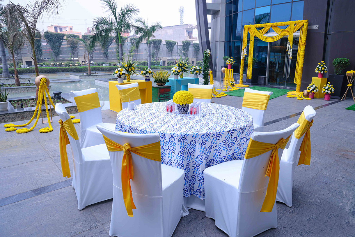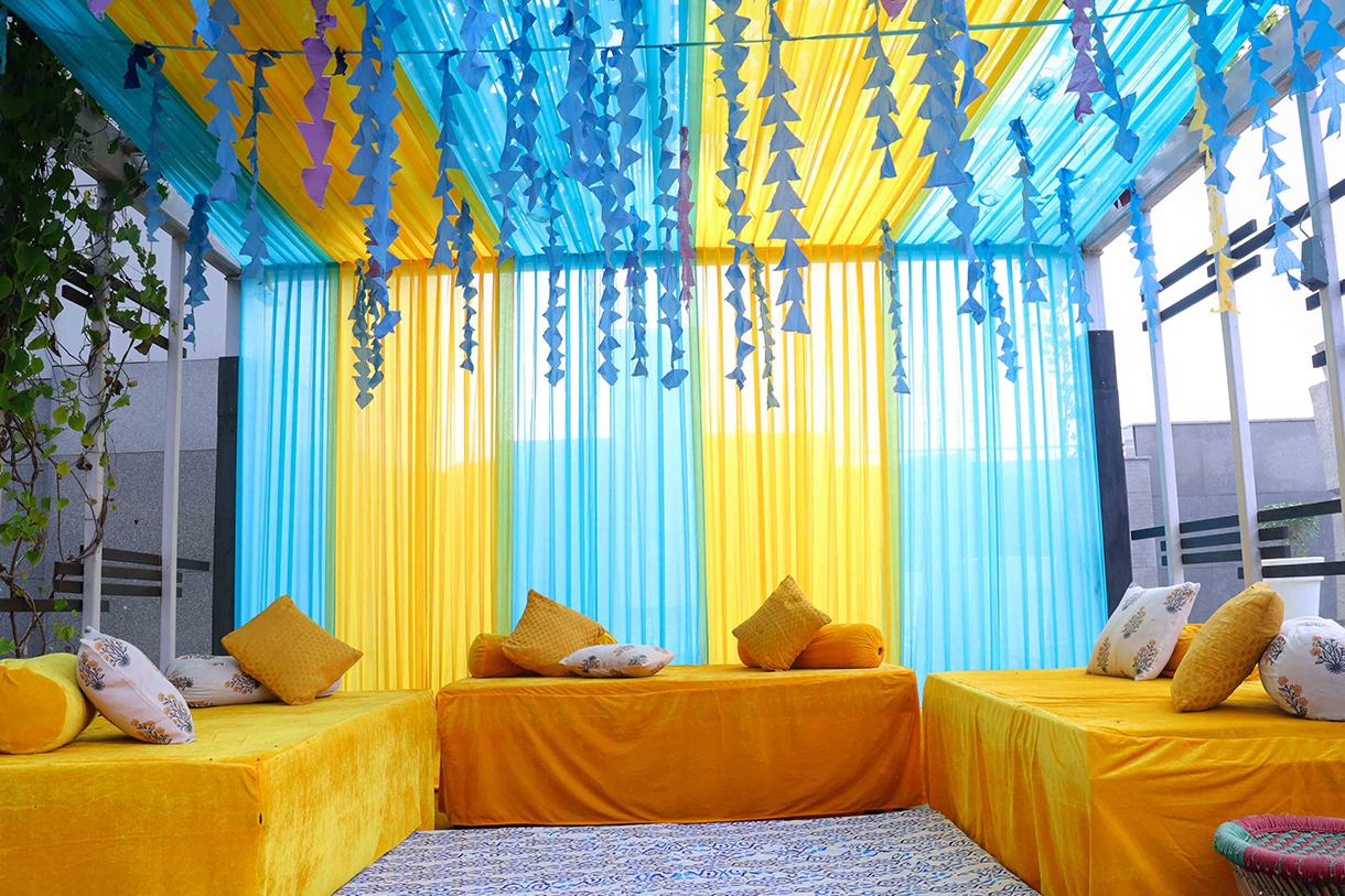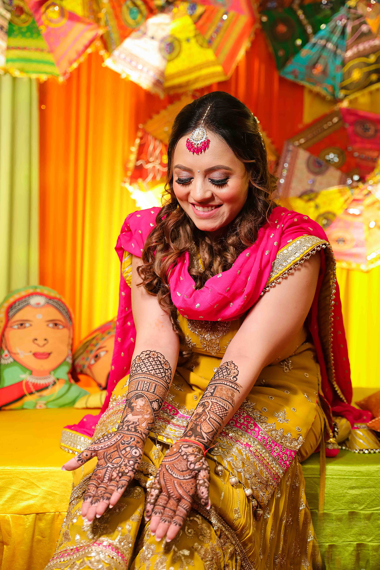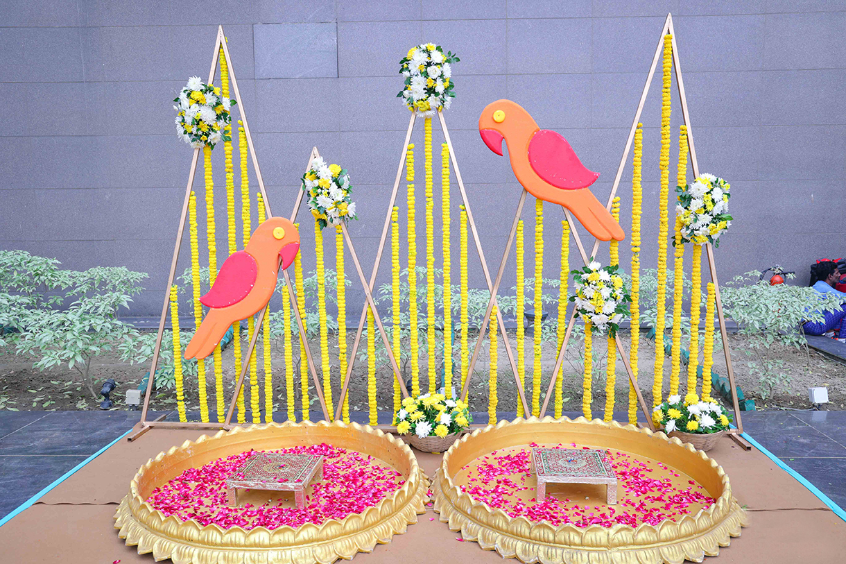 Colorful and vibrant décor with family and friends dancing on dhol, haldi was a totally fun-filled affair.