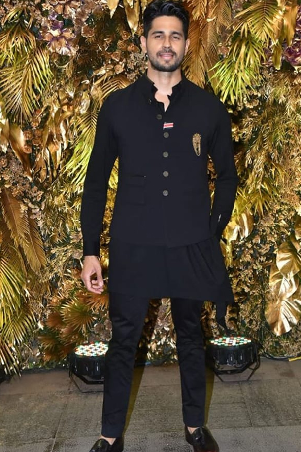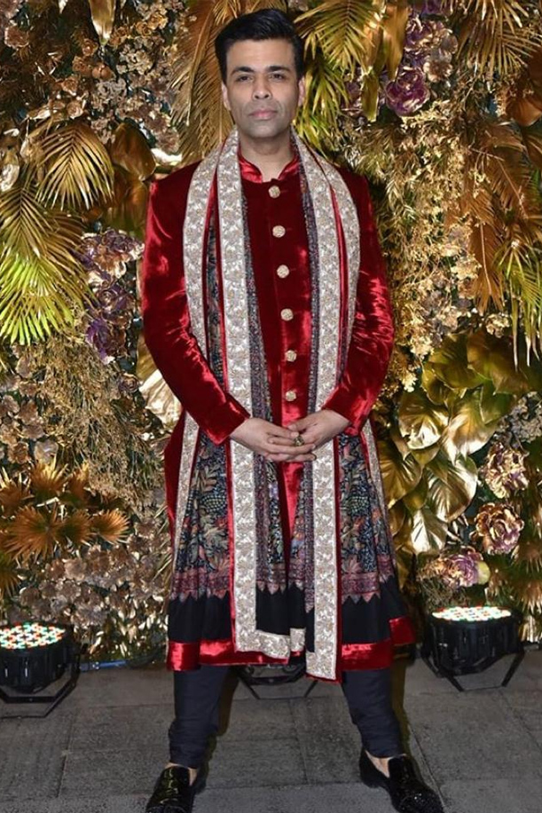 Sidharth Malhotra wore a dapper black indo-western outfit while Karan Johar wore a heavy velvet sherwani, both by Manish Malhora.