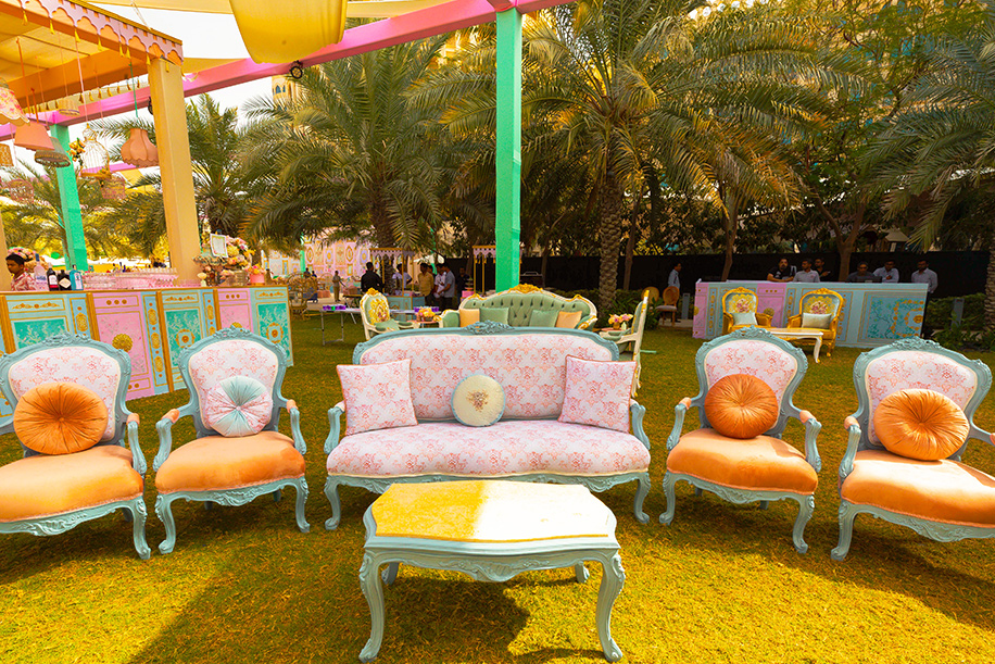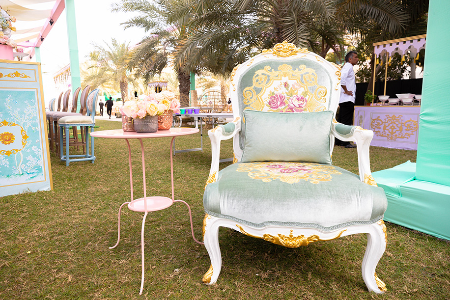 Set amidst the beautiful lawns of The Waldorf Astoria, Ras Al Khaimah, the theme of the event was inspired by the bride’s love for ‘shabby chic’. Being the pilot event of the two-day wedding celebration and the opportunity to create a perfect first impression Team Amaahyaaj delved into the far reaches of their creative horizons with the single aim to mesmerize.