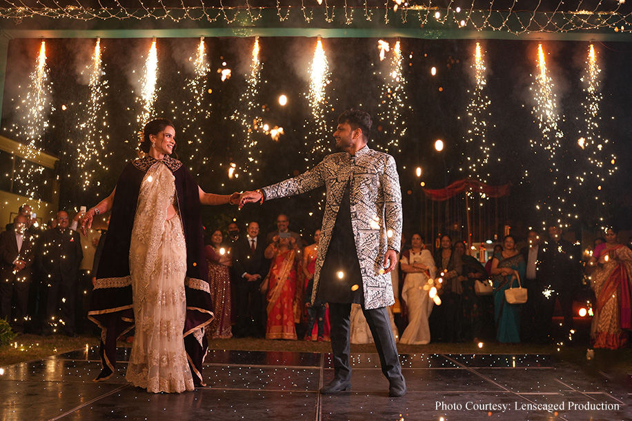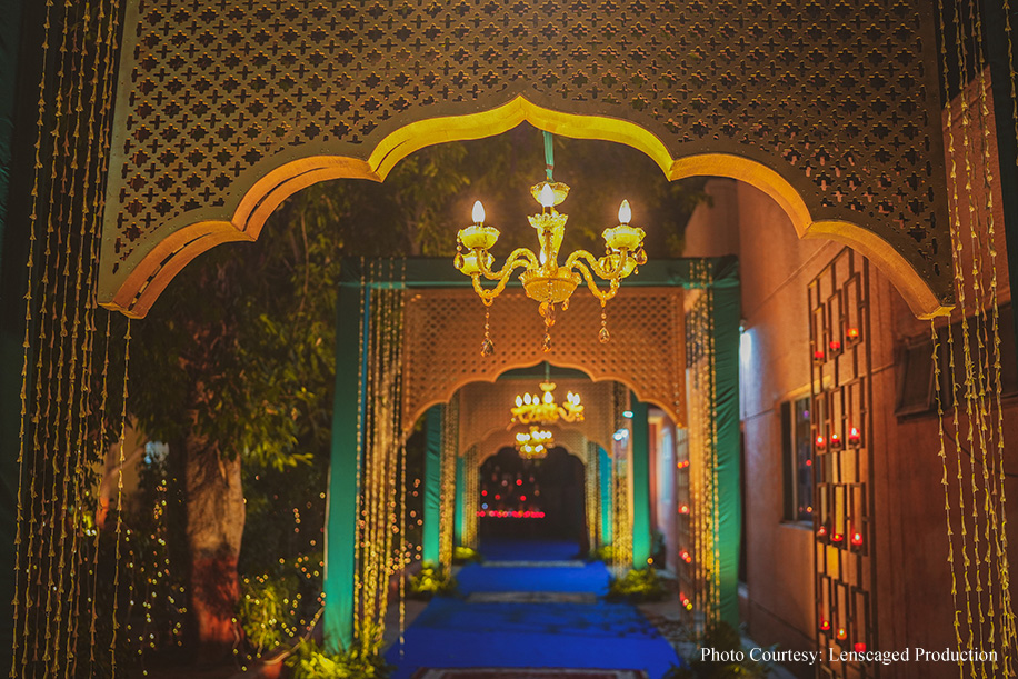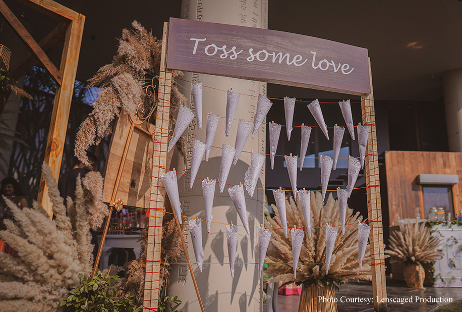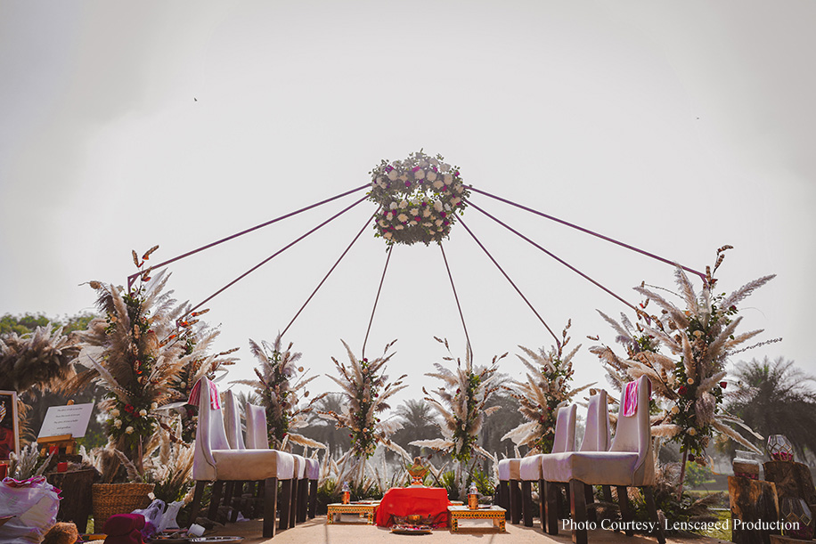 Talking about the process, the team shares, “We loved the fact that our bride and her family came from such a strong, feminist school of thought, and wanted to do away with stereotypical regressive traditions. For their wedding, they opted out of doing the custom of kanyadaan, exchange of gifts, vidaai, and mangalsutra, and instead exchanged promise chains with each other. We also arranged for a female pandit for them, Manisha Shete from Jnana Prabodhini, Arya Samaaj, and Swyamvar traditions. It was amazing for us all to experience such progressive thinking. Also, as none of the events were like typical Indian rituals, we let our creativity soar to create unique themes and decor concepts. All the functions were distinct, contemporary, and intimate, except for the Sangeet that was attended by over 650 guests.”