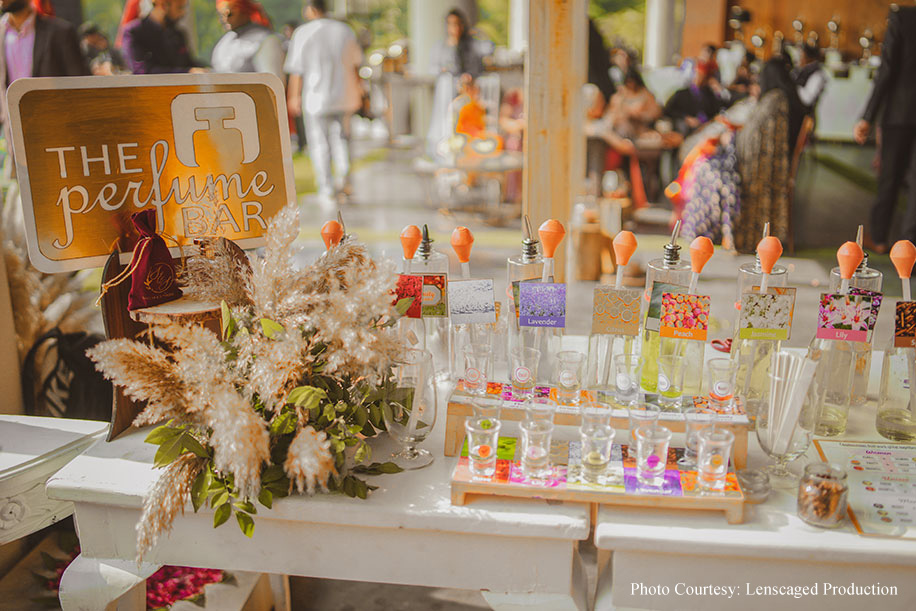 For their intimate wedding, the couple chose Shubhrashi Kutir at Greater Noida and Noida Golf Course, a venue the bride’s mother had wanted for her daughter’s wedding for years, making it all the more special. A villa property surrounded by a lush green golf course with a huge pond, the stunning venue was organically transformed with the exquisite, unconventional decor for all of their functions by Foreign Wedding Planners.