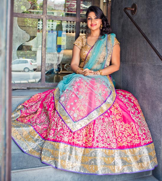 “For as long as I remember, I have been dreaming of a perfect wedding look. And now that I am getting married, I realized how fantasizing about the lehenga is fun, but the search in reality is quite difficult. Soon after my engagement I started thinking even more about my wedding day look, I visited a few stores, but wasn’t quite happy after the trials. While going through WeddingSutra’s page on Facebook, I came across ‘Wedding Sutra on Location’ and thought this would be a great opportunity for me to try out something new. I wrote in to them, quite unsure if I would be selected but luckily I received a call. When I arrived at the venue- Jade, I was introduced to ace Bollywood Stylist Nisha Kundnani. I had a brief chat about my likes and dislikes, and based on my inputs, Nisha suggested a few outfits which would suit me. I actually quite liked all the outfits at Jade, and each and every outfit which Nisha selected so I had no clue which would suit me best. Nisha told me to try one, and I was quite comfortable in it. I then proceeded for my make up with Makeup Artist Amrita Sanghavi. She recommended smokey eyes and a side bun. I had never tried a side bun so was a little unsure but at the same time I wanted to try something new. And I was so happy I went with Amrita’s recommendations. I felt my eyes never looked so beautiful and the side bun added a little drama to my look. And yes I could carry it off!”