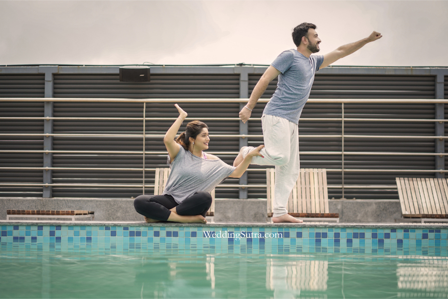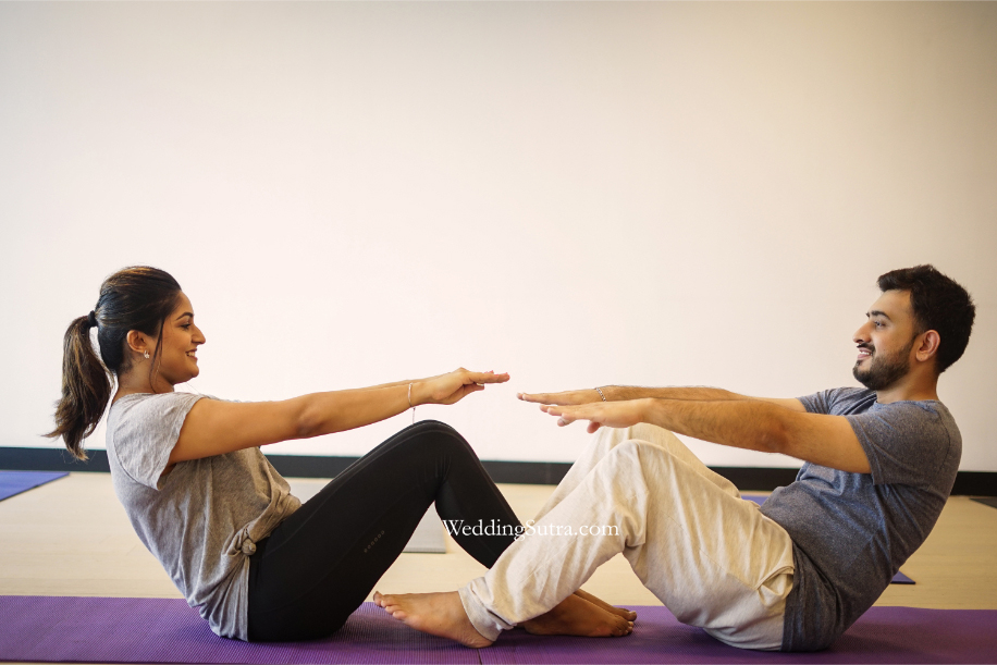 From the warm up to the Navkasana (Boat pose), to touching fingers, Yashvi taught Dhaval a few new moves and sneakily slid that platinum band of love on his finger!