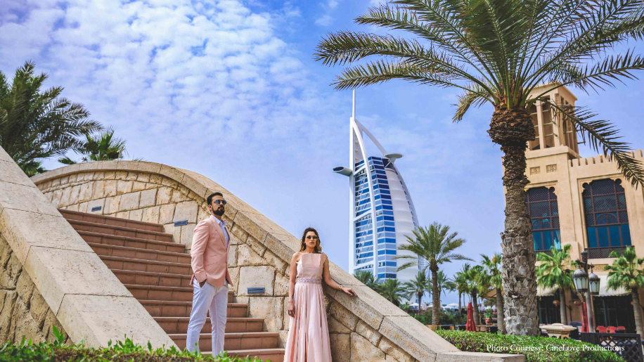 From beautiful beaches to sandy dunes, Dubai offers perfect settings for a pre-wedding photo shoot. An endless montage of picture-perfect backdrops, this desert city can enhance any romantic shoot designed according to multiple themes or moods – be it glittery urban, ethnic elegant or natural vistas. This gorgeous destination enticed Yuktee and Mayoor to head there for their pre-wedding shoot. They picked the luxurious Madinat Jumeirah as one of their main locations as it had everything that made the couple swoon. Here, they share their beautiful journey of love and highlights from the shoot by WeddingSutra Favorite – CineLove Productions.