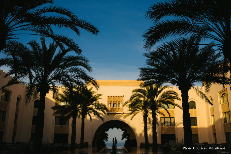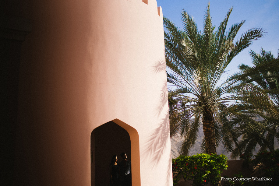 With swaying palm trees, striking traditional architecture and bougainvillea blooms brightening up the landscapes with their pops of colors, Oman served up a range of breathtaking backdrops. WeddingSutra Favorite WhatKnot captured the couple’s romance, and here, Zainab shares their love story and some highlights of the experience.
