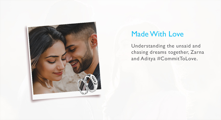 Encouraging each other to reach new heights and standing tall together through thick and thin, Zarna and Aditya #CommitToLove as they find their individualities while chasing their dreams together. Standing the test of time without losing sheen, Platinum Love Bands are the perfect marker for their enduring love.
