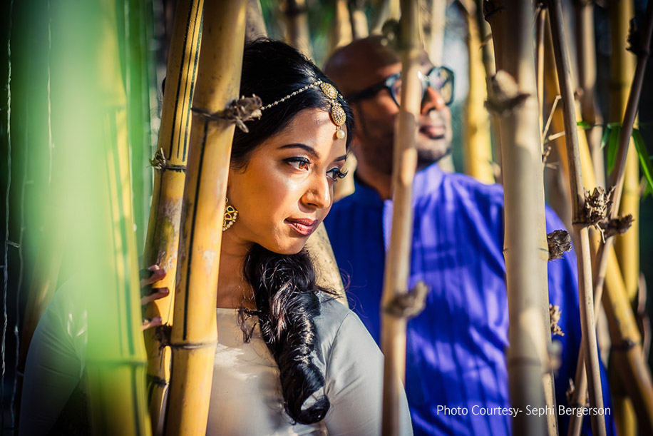 The one hairstyle that has lasted the test of time is the classic bun. From the black and white pictures of your grandmother to today’s runway looks, this hairdo has enduring appeal. Its no-fuss vibe is easy to maintain even through long, boisterous sangeet events. This style also frees up your shoulders and back so you can flaunt some interesting bling and ensemble designs.