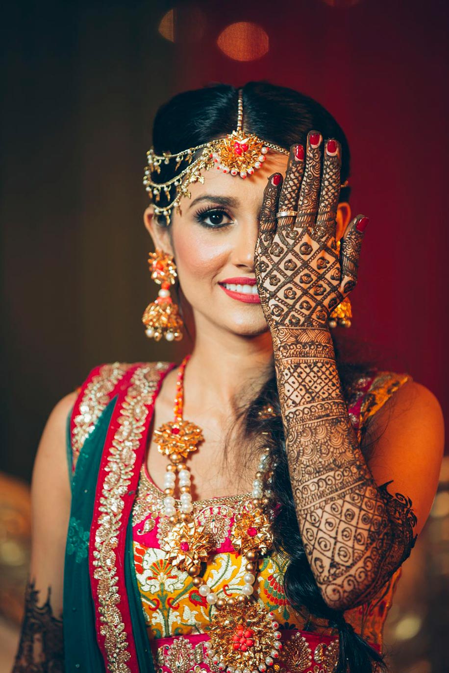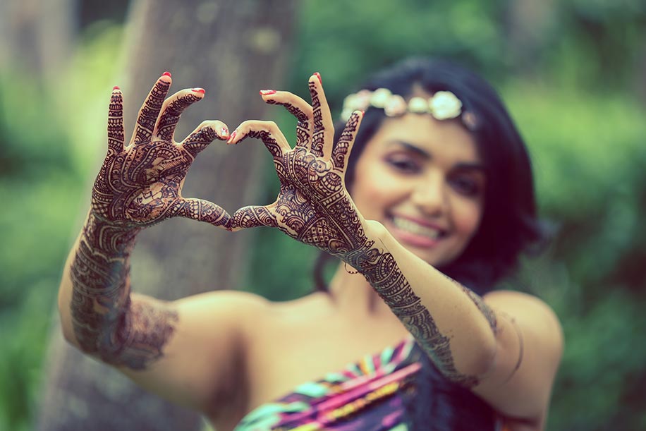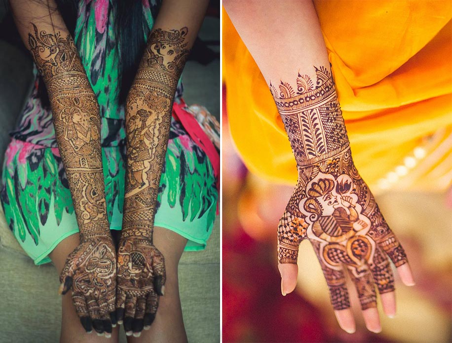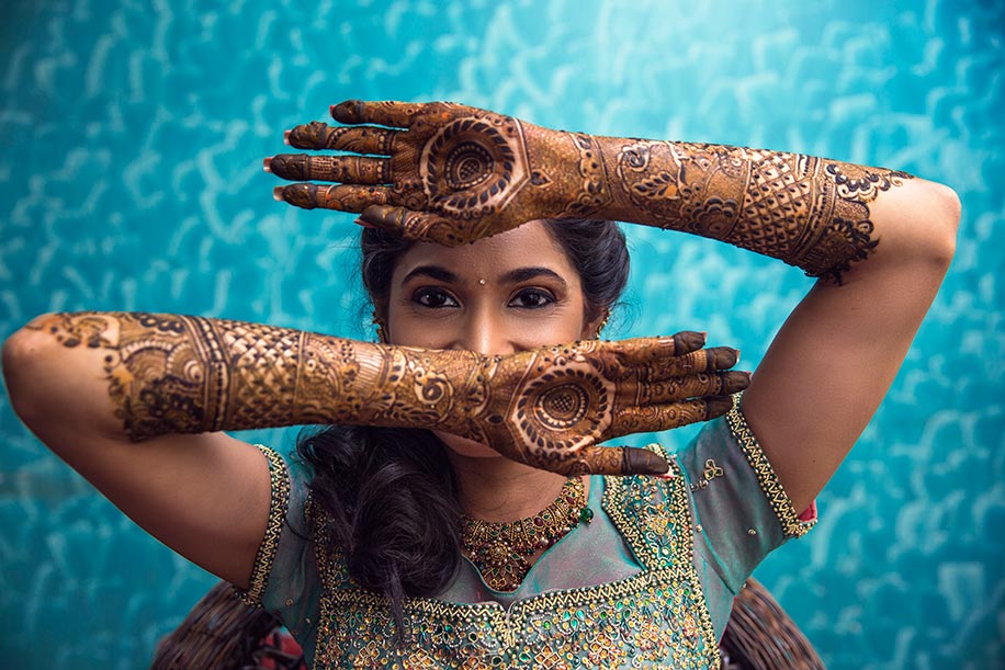 This is a recent henna trend that invokes the essence of paintings – traditional mehndi patterns are filled in with colours in a pleasing arrangement. Some artists even go a step further and add crystals, sequins, glitter and shimmer, giving traditional mehndi a glamorous vibe.