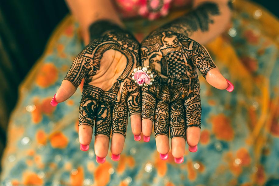 From spirals to shimmer, florals to figures – we’ve drawn up the top 25 bridal henna trends for you.