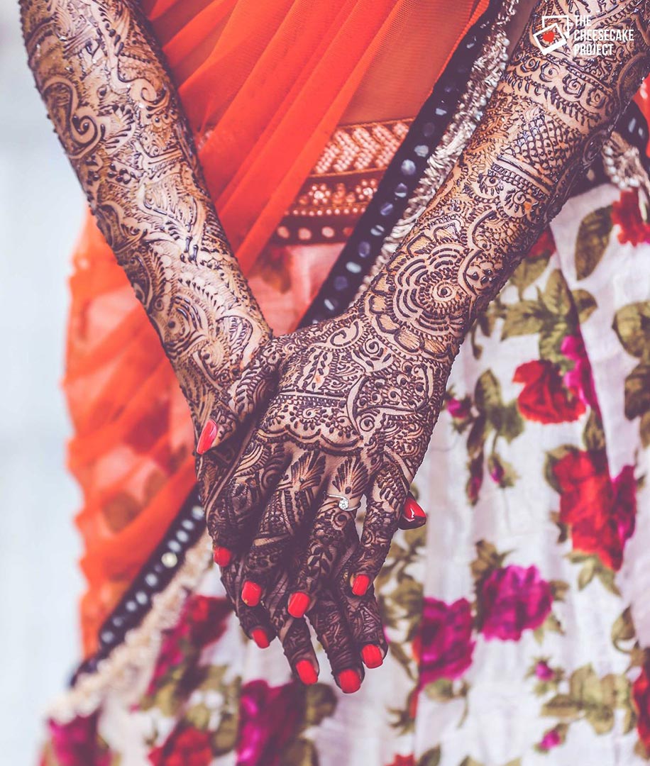 All things floral are evergreen at weddings. Today, petals and posies, buds and blooms continue to adorn the hands and feet of brides, as they have done so traditionally for decades. Today, henna artists have started adding accents to floral patterns with shimmer, glitter gel and dazzling rhinestones.