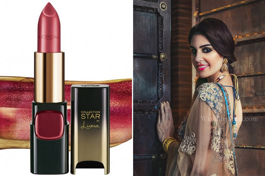 Crimson is sexy and seductive and with its intense pigment and deep color, L’Oreal Paris Color Riche Gold Obsession Lipstick in Scarlet Gold was perfect for a reception look at WeddingSutra Bridal Diaries. This look was completed with smokey eyes in shades of gold, purple and brown from the L’Oreal Paris Color Riche Gold La Palette.