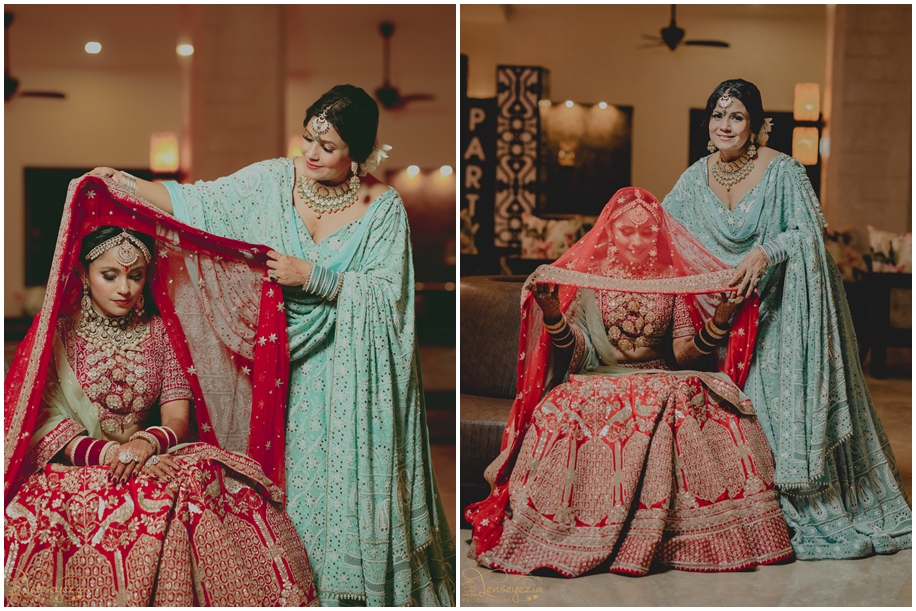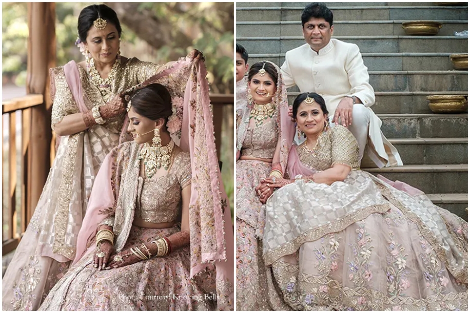 15. Here comes the blushing ‘Mother of the bride’! Bride Krishna’s beautiful bond with her mother reflected in her ornate blush lehenga that perfectly matched her own.