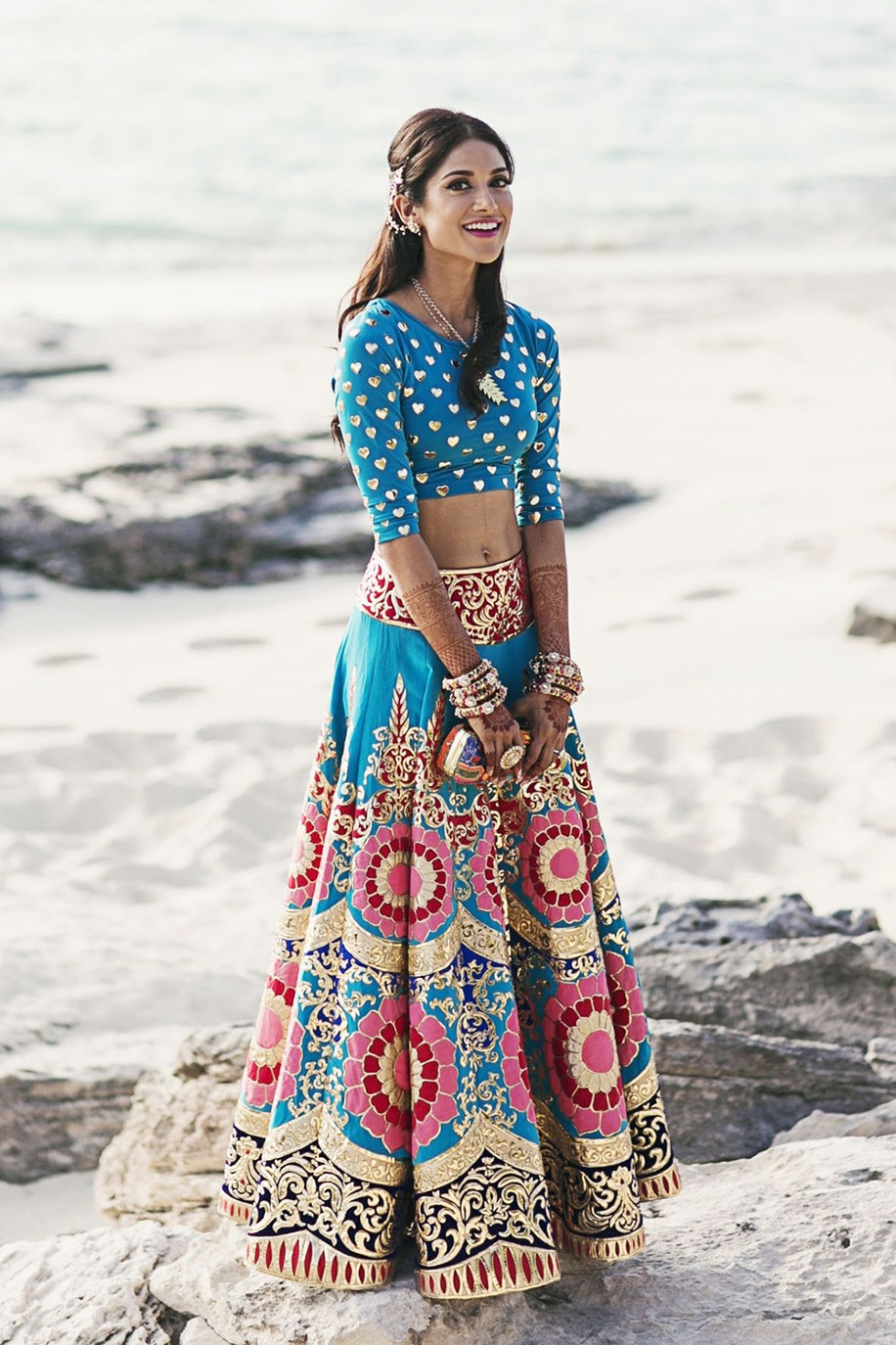 Summer hair, ocean views, floral crowns – all things that are listed on a bohemian bride’s Pinterest board. We love bohemian weddings, but even more, we love a Boho wedding lehenga. Reserved for the free-spirited girl, bohemian wedding lehengas are romantic, fuss-free, and exuding an ethereal elegance. Get the beach waves and flower crowns ready as we bring to you 10 breathtaking wedding lehengas for a bohemian style wedding!