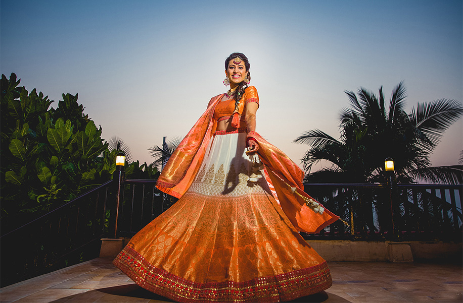 If you're the chirpy bride waiting patiently for an outfit to complement your spirits, Orange is definitely the color for you!