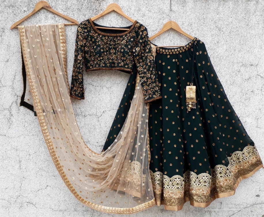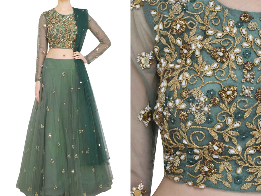 Priti Sahni, Deep green sequin and zardozi lehenga set