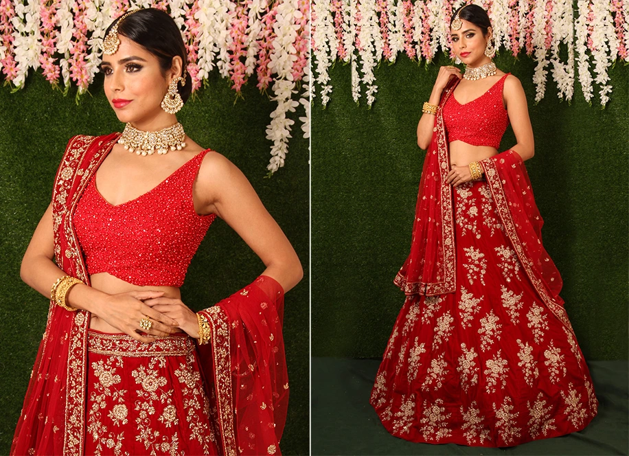 Aastha Narang, Steal hearts in this Red and gold embroidered lehenga