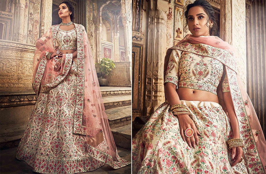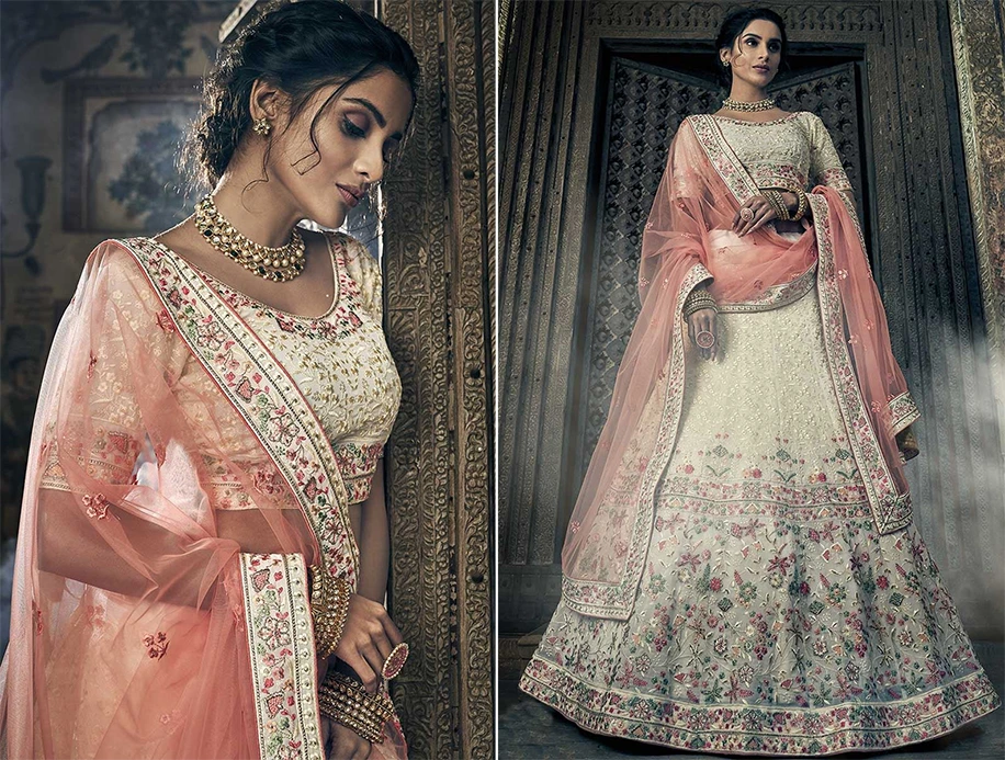 Aishwarya Design Studio, Classic Off-white floral embroidered lehenga set