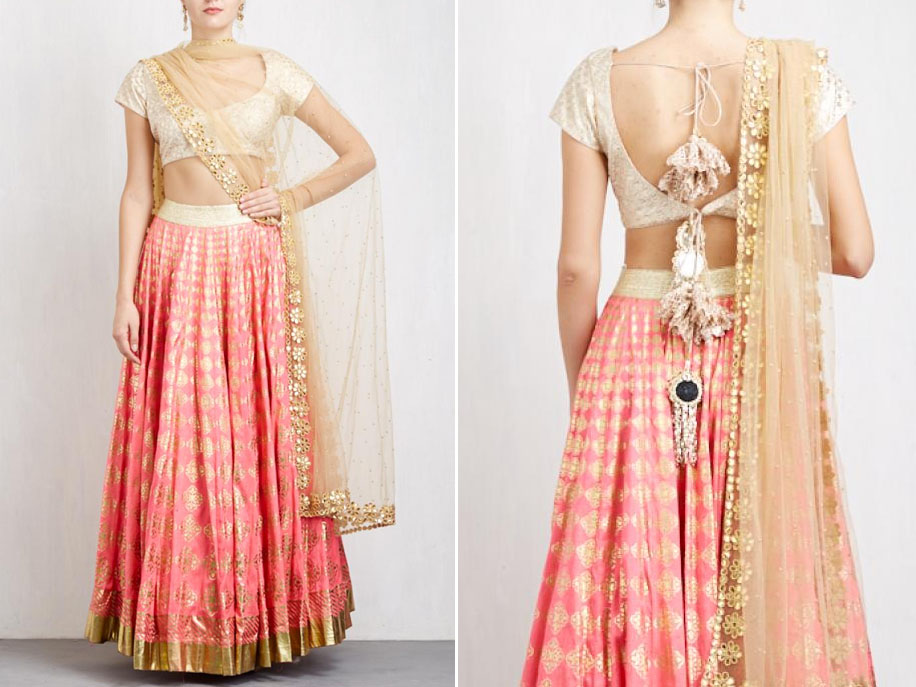 Abhinav Mishra, Pink and Gold Lehenga Set