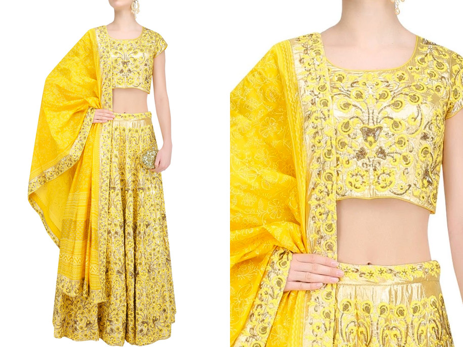 Surendri by Yogesh Chaudhary, Yellow Embroidered Lehenga Set