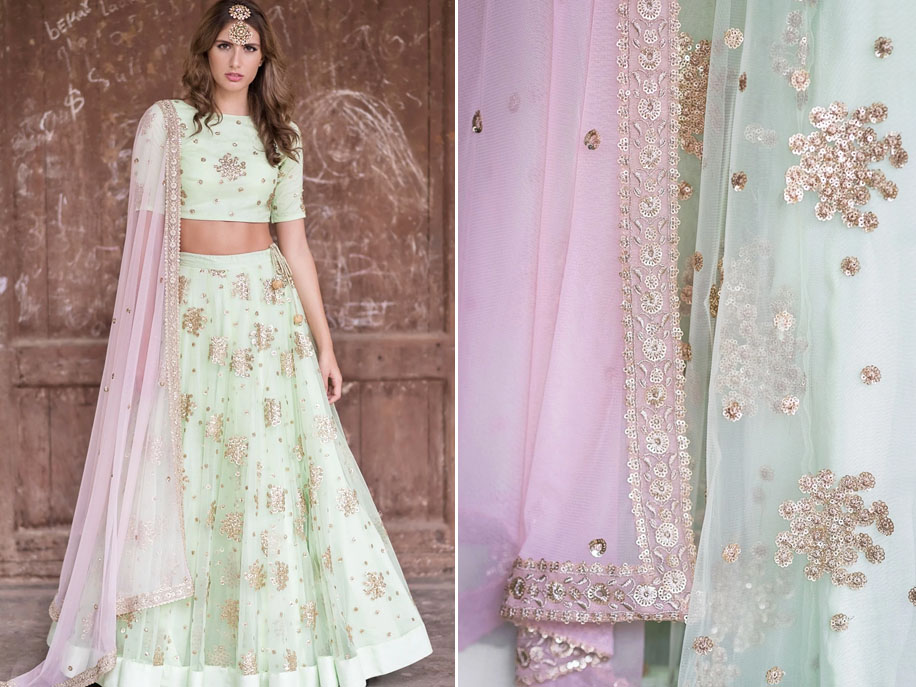 Inspired? Now remember these rules to find a bridal lehenga that is true to you. First, choose a muse for your look. It could be an era (vintage glam?), a season (spring bride?), a motif (natural, floral, geometric?)… you get the drift. Then pick a color palette you love that also flatters your complexion. Pick a skirt length for your height, sleeves for your body structure and a