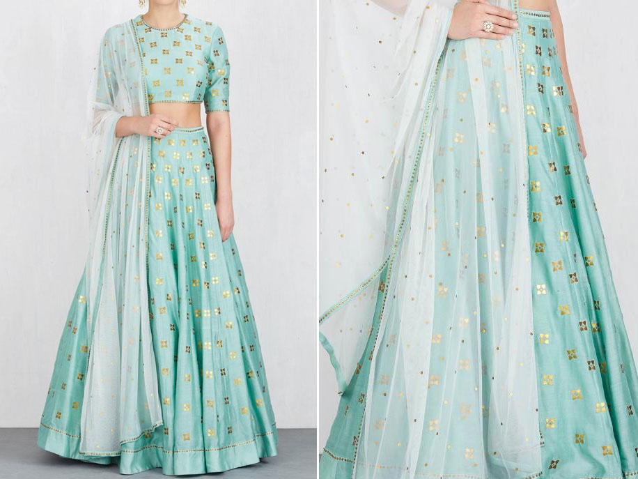 Bhumika Sharma, Autumn Teal Lehenga Set