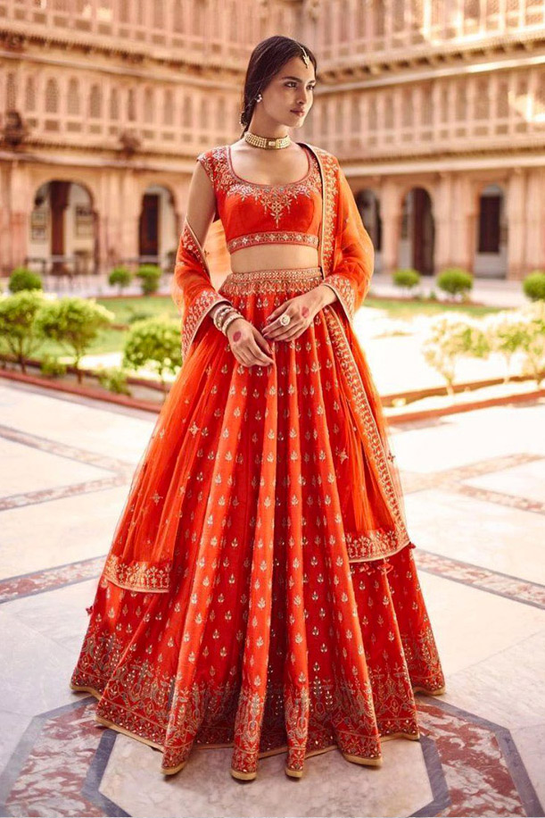 A breezy, no fuss option for intricately embroidered or embellished lehengas as the style would not steal focus from the detailed work.