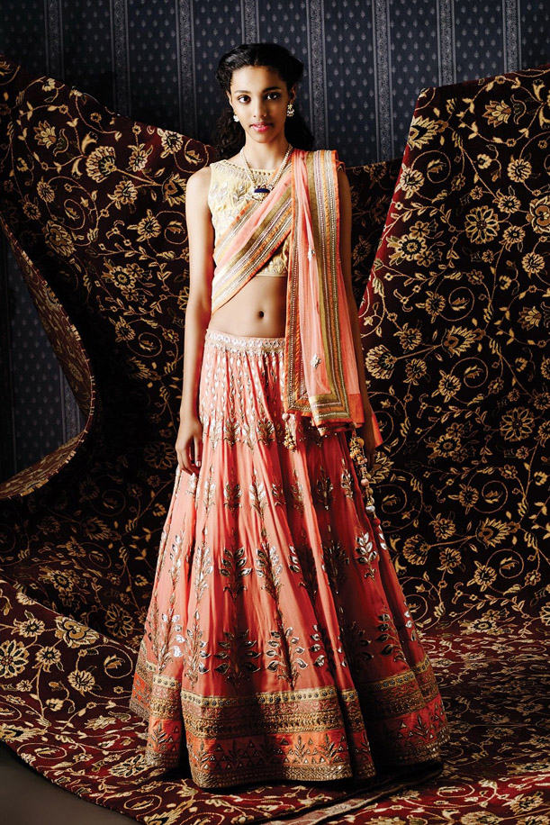 The perfect drape for a Mehndi or Sangeet to be able to dance freely. It is also a great way to add some ornamentation with a heavily embellished or bejewelled belt.