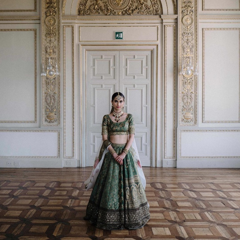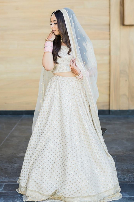 This intricate, layered style is perfect to add some richness to minimalistic lehenga styles.