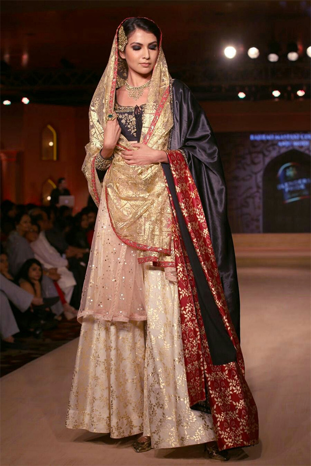 14. Veiled in front of the face in a “dulhan” drape and trailing behind