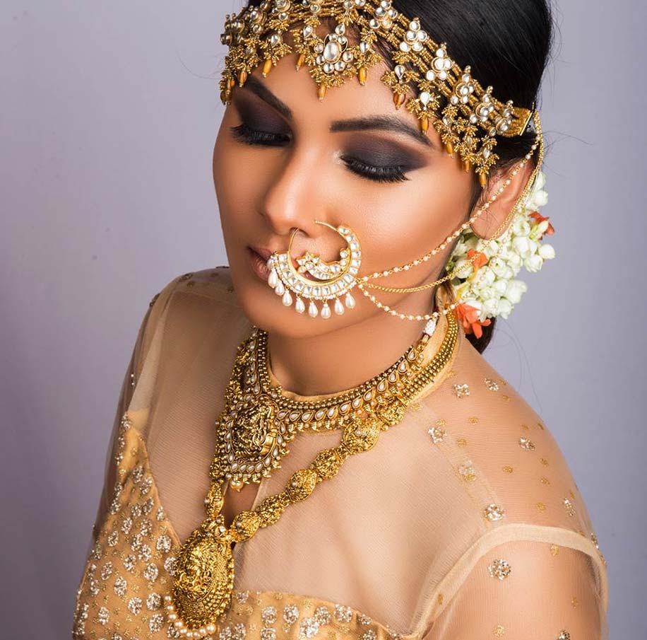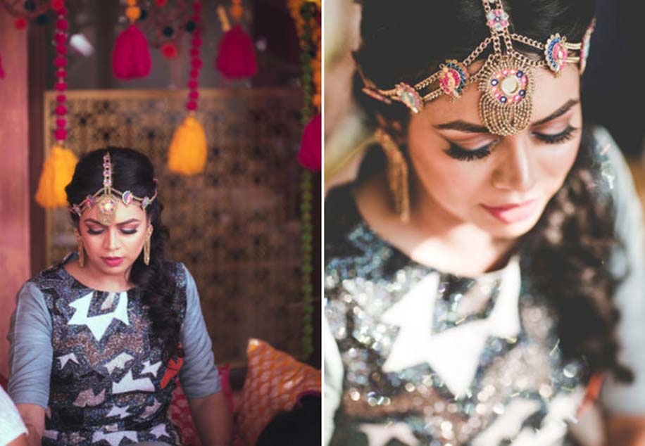 Love ghungroos? Then take inspiration from bride Thanzila Mehjabeen who cleverly incorporated them in her matha patti design which beautifully framed her face while subtly amplifying her summer bridal look.