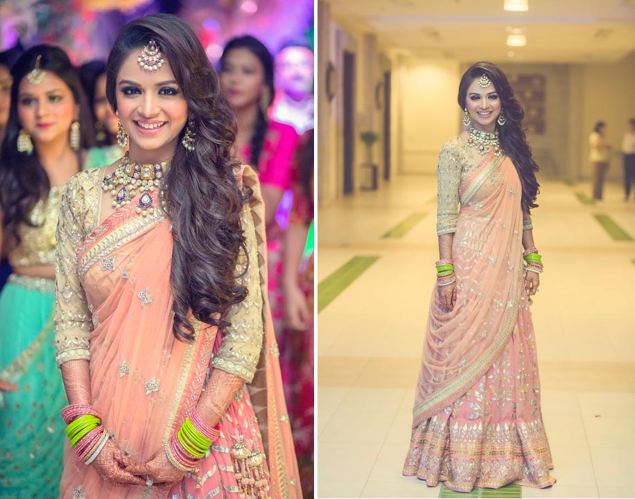 1. Akanksha in a peach gota patti lehenga for her sangeet