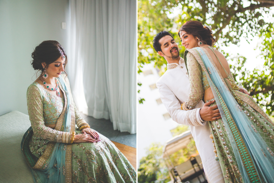 17. Namrta in a mint green lehenga choli for pheras