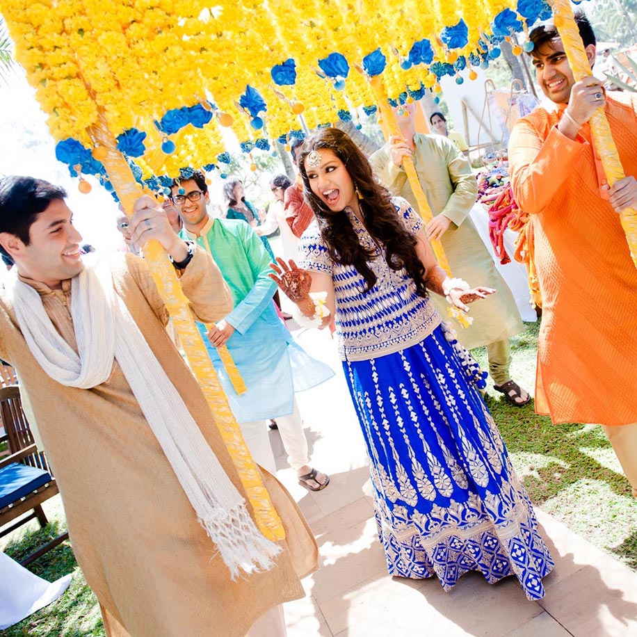 20. Freya in an electric blue lehenga at her mehndi ceremony