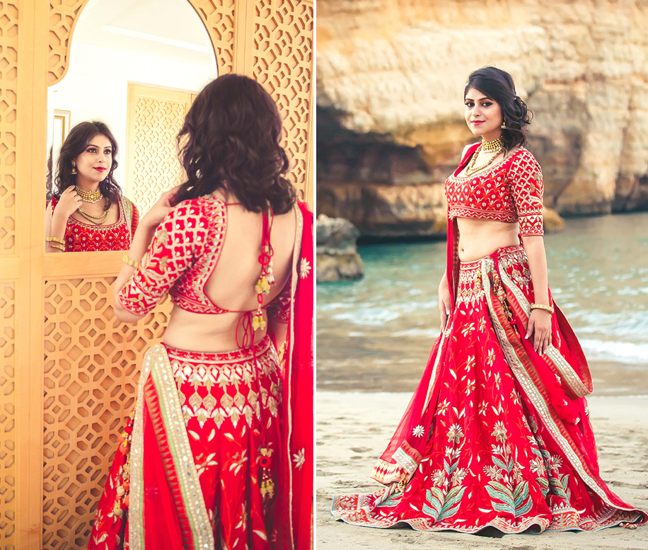 6. Prerna in a crimson red creation at Shangri-La Barr Al Jissah, Oman