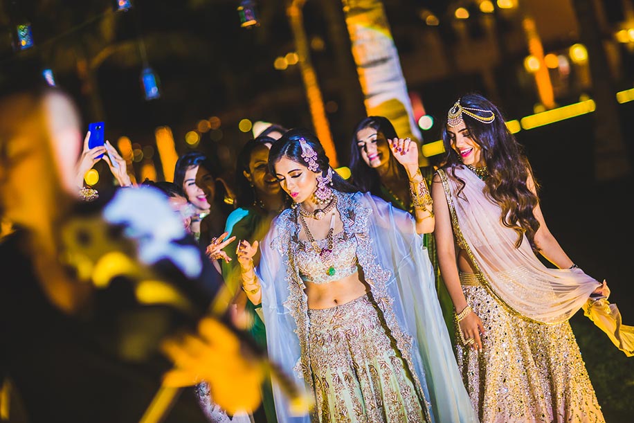 Priyam chose a delicate sage green lehenga accentuated with a pop of pink embroidery for her big day.