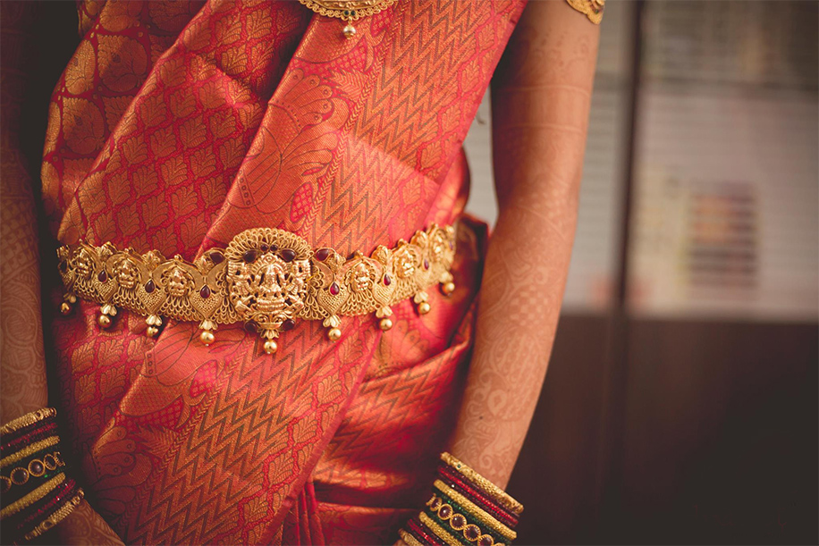 Adorned with motifs of gods and goddesses and other auspicious symbols, wedding jewellery for a Tamilian bride is more than just ornamental bling. Swathed in her rich Kanjeevaram silk zari saree with exquisite gold jewellery studded with gold and precious gemstones, the Tamil bride is a vision to behold. The same holds true for the contents of her jewelry box that holds a plethora of distinctive pieces that range from intricately carved Ottiyanams that cinch snugly around the waist to the signature Mangala Naan which with its classic mango-shaped locket popular across cultures nowadays. So if you’re a Tamil bride aiming to go for a traditional look on your big day, here’s a quick jewelry guide to help you make the best choices.
