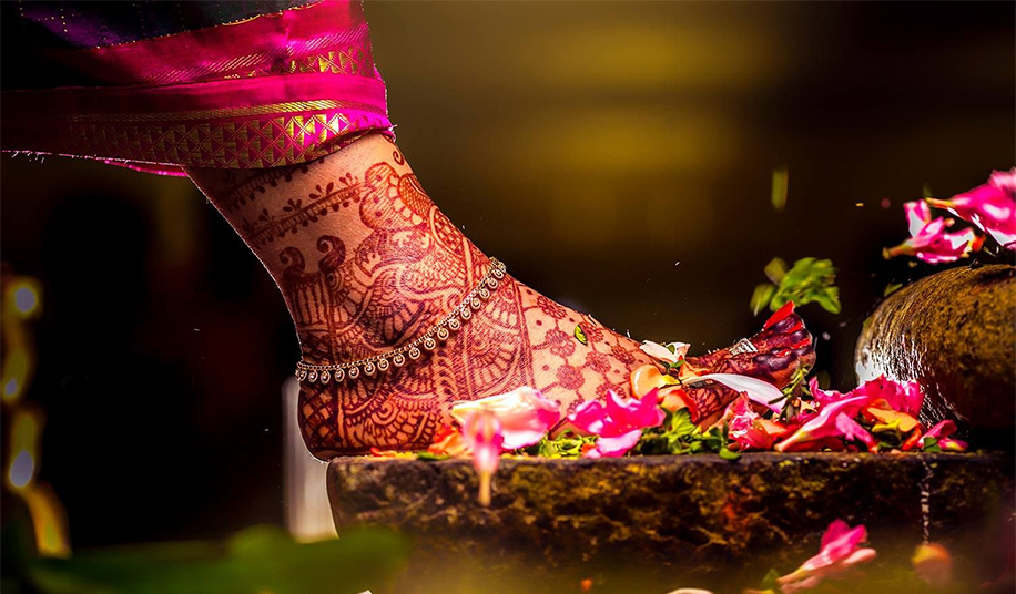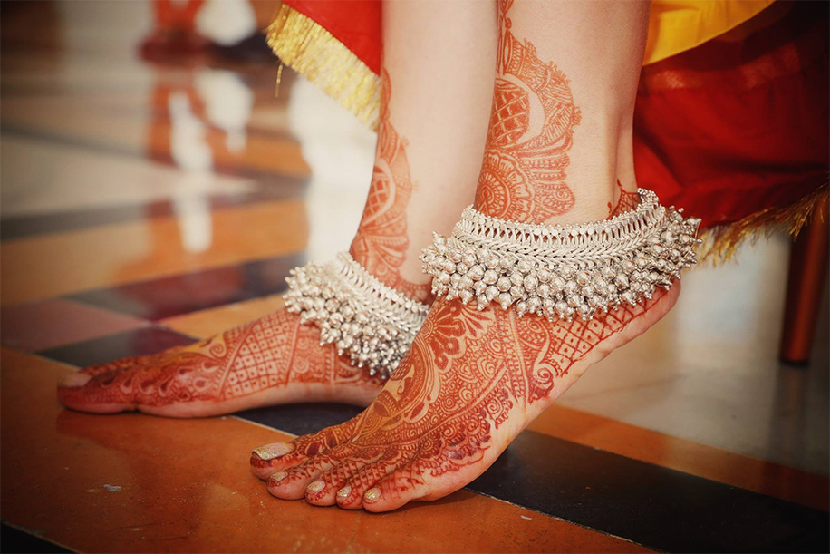 An essential accessory in many Indian brides’ jewellery box, the Kolusu are delicate anklets that tinkle with every step.