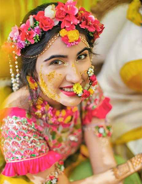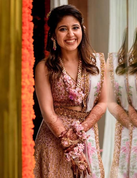 Another celebrity pick, Adirag was the brand of choice for many TV stars like Yuvika Chaudhary, Shweta Tripathi, Asopa Charu and Canadian singer Natalie Di Luccio who married VJ and TV producer Raghu Ram, when selecting floral baubles for their pre-wedding functions. The label also crafts wonderful hair accessories.