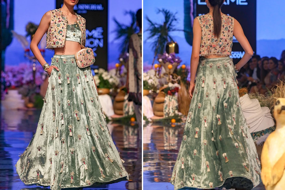 Equipped with enough space to fit your bridal essentials, belted bags are back in full swing, and this time, it’s on the waist of the desi bride! Inspired by the 80’s era, the belted bags of this generation are sleek, adaptable, and most importantly, have the ability to make a statement without stealing your outfit’s thunder. And keeping its soaring popularity in mind, Indian designers have jumped on the bandwagon to create stunning belted bags and outfit sets that include these bags so that you can revel with your partner hand-free regardless of the function you’re attending.