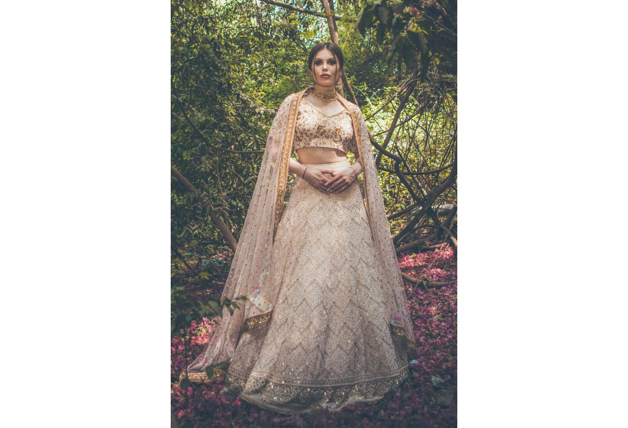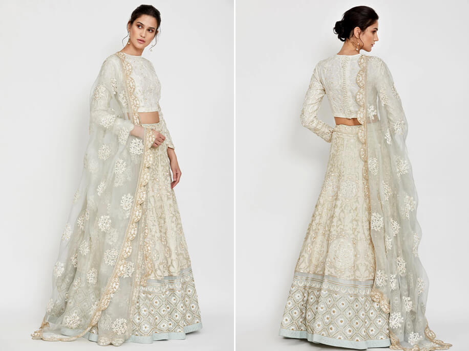 Ivory Lehenga with Parsi Gara and Chikan work by Anjul Bhandari